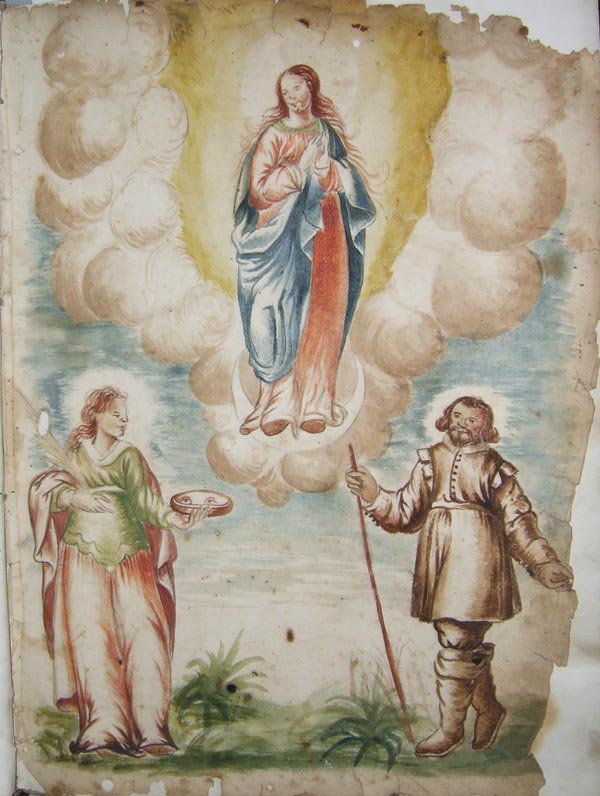 Estampa que encapçala el llibre d'actes de la Confraria de la Concepció, Santa Llúcia i Sant Isidre (1656-1823). AHMR, actualment conservat al Museu d'Art i Història de Reus A la ciutat la devoció a santa Llúcia és molt antiga. El 1327 ja existia una confraria sota la seva advocació, que el 1401 ja tenia un altar a lesglésia parroquial. El 1423 es va crear una capellania vinculada a aquest altar. Quan es va construir l'actual prioral de Sant Pere, al segle XVI, laltar de Santa Llúcia es va ubicar al costat de laltar major, prop de la porta de Sant Sebastià. El 1603, els pagesos es van incorporar a la Confraria de Santa Llúcia, que prengué el nom de Confraria de la Concepció i de Santa Llúcia. Fins aquell moment, els pagesos estaven junt amb els ferrers en la Confraria de la Concepció i de Sant Eloi. Gràcies a la documentació que serva lArxiu Històric Municipal, podem conèixer levolució de la devoció i la festa al voltant de santa Llúcia i els pagesos, així com la vida quotidiana dels seus confrares, la seva organització, amb la vint-i-quatrena, o les relacions amb les altres confraries.